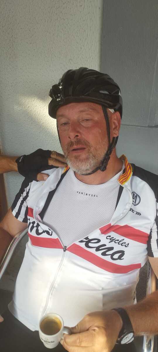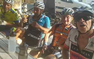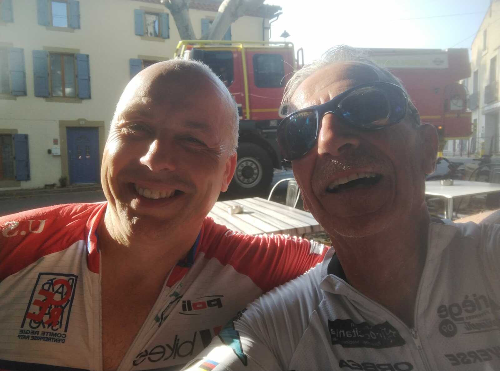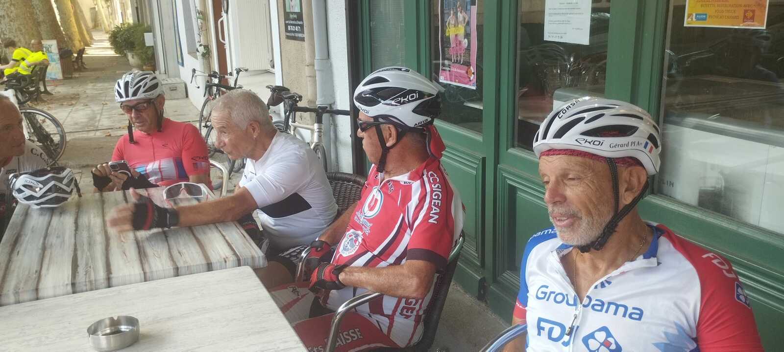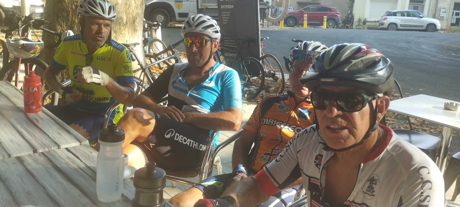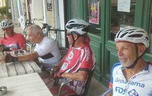 Pause café à Fabrezan. C'est notre ami Rodolphe qui a payé le café à tout le groupe. Merci à lui.