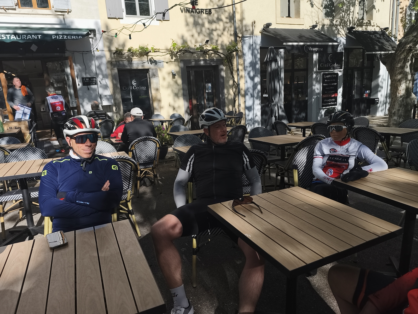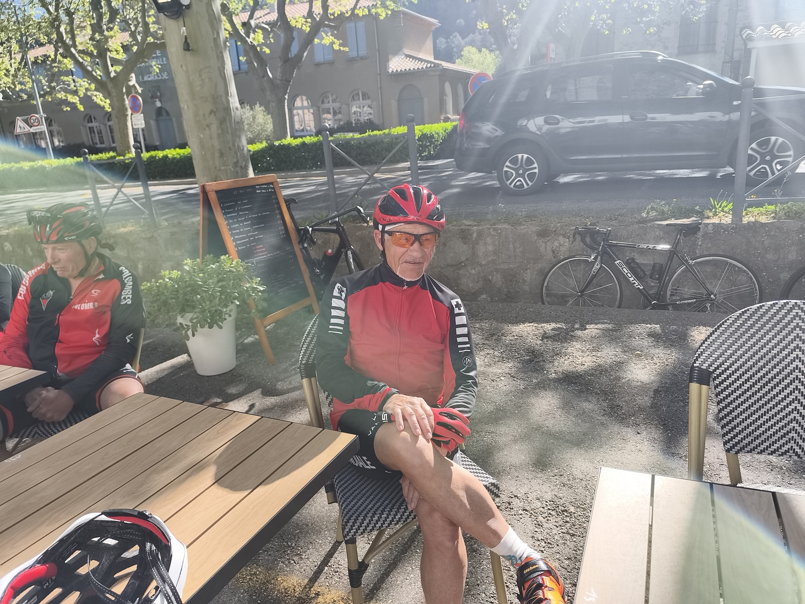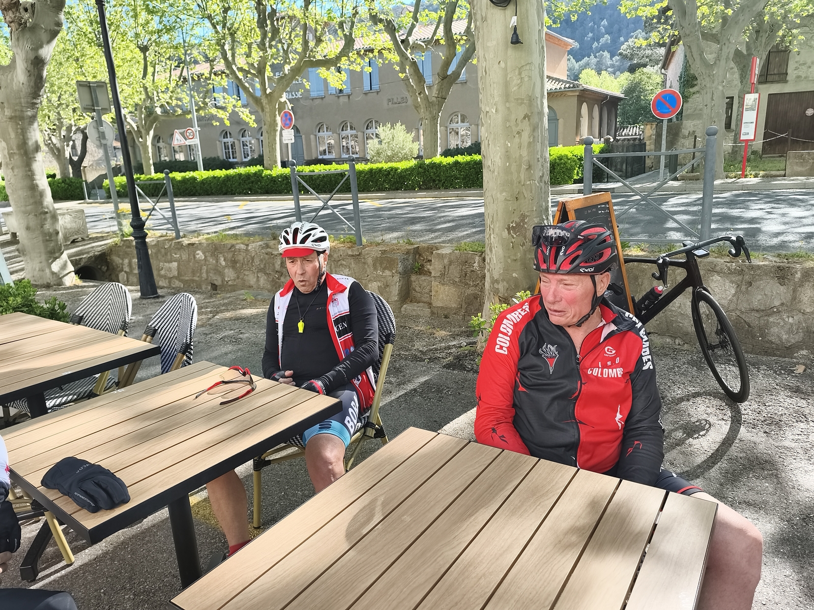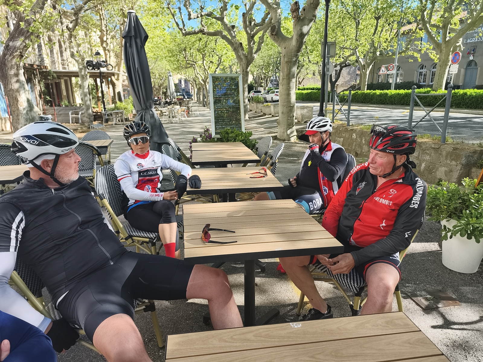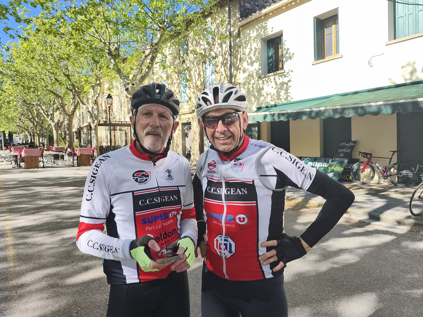 Sortie club avec une pause à Lagrasse où notre ami Olivier nous a payé le café de l'amitié