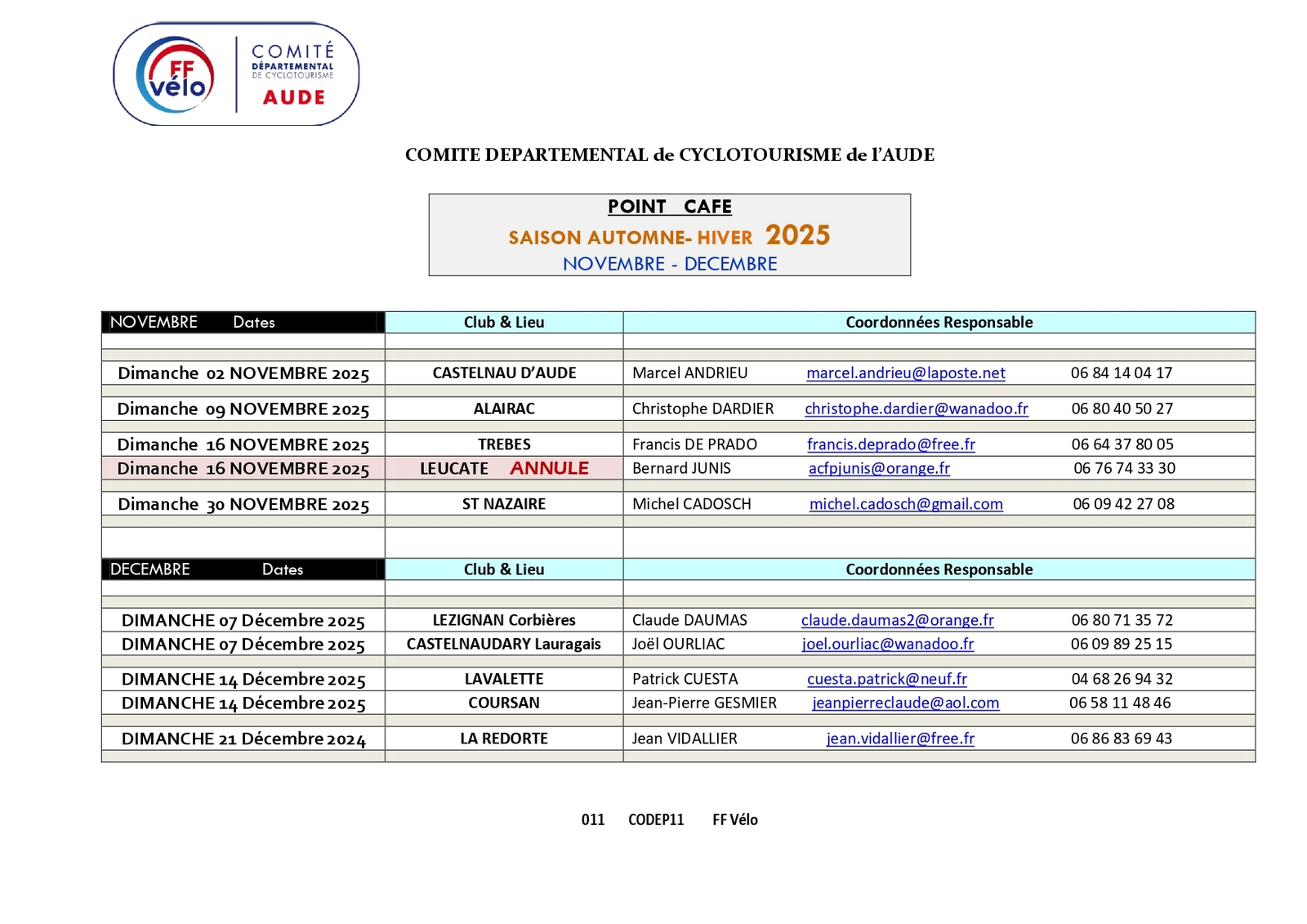 le CODEP11 FFVélo vous invite avec l’appui des CLUBS organisateurs