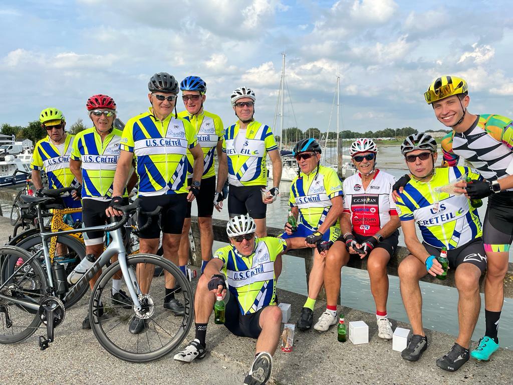 Il y avait un représentant de notre club sur cette randonnée de 215 km qui reliait Colombes en région parisienne au Crotoy dans la baie de Somme. Il s'agit de votre serviteur qui a fait le trajet avec ses anciens équipiers de l'USCRETEIL. La photo projette beaucoup de jaune et bleu mais on peut apercevoir Serge avec le maillot rouge et noir de SIGEAN.