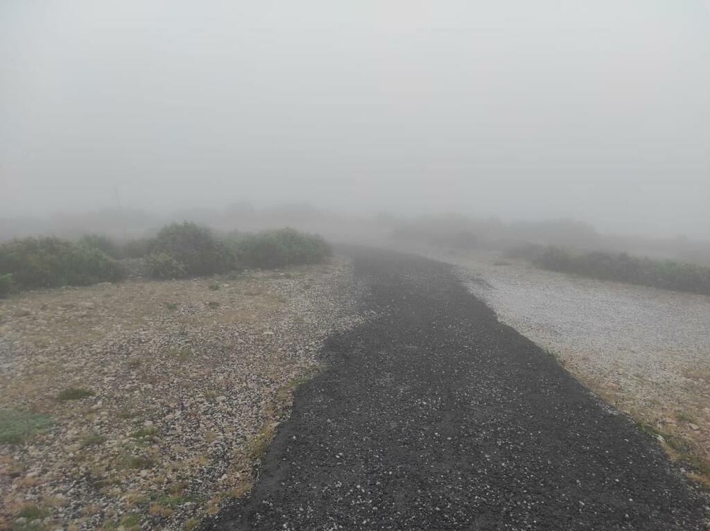 Je dois dire qu'il est meilleur grimpeur que photographe notre ami Bruno. Bon il y avait le brouillard, mais surement un peu de fatigue pour prendre une photo aussi peu évocatrice. On distingue du blanc. Serait ce de la neige ?