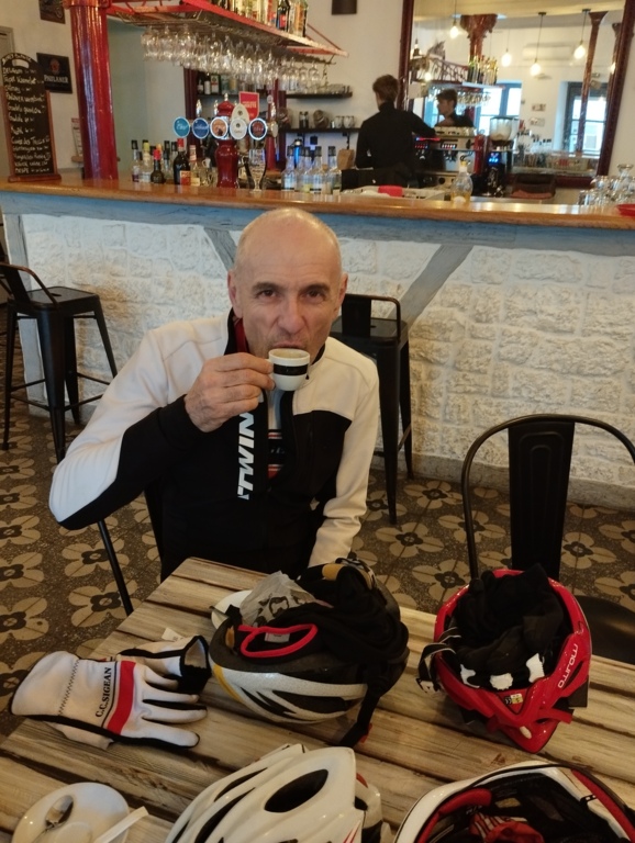 Petit arrêt à Fabrezan où notre ami Pascal nous a offert le café.