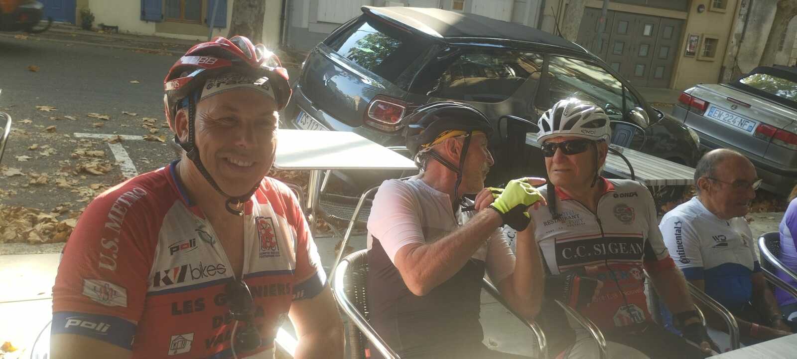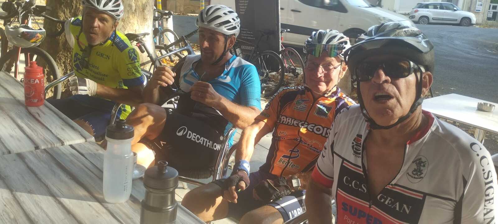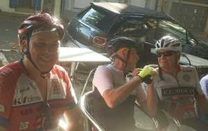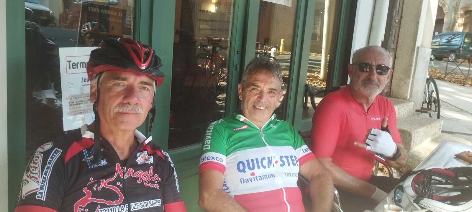 Pause café à Fabrezan. C'est notre ami Rodolphe qui a payé le café à tout le groupe. Merci à lui.