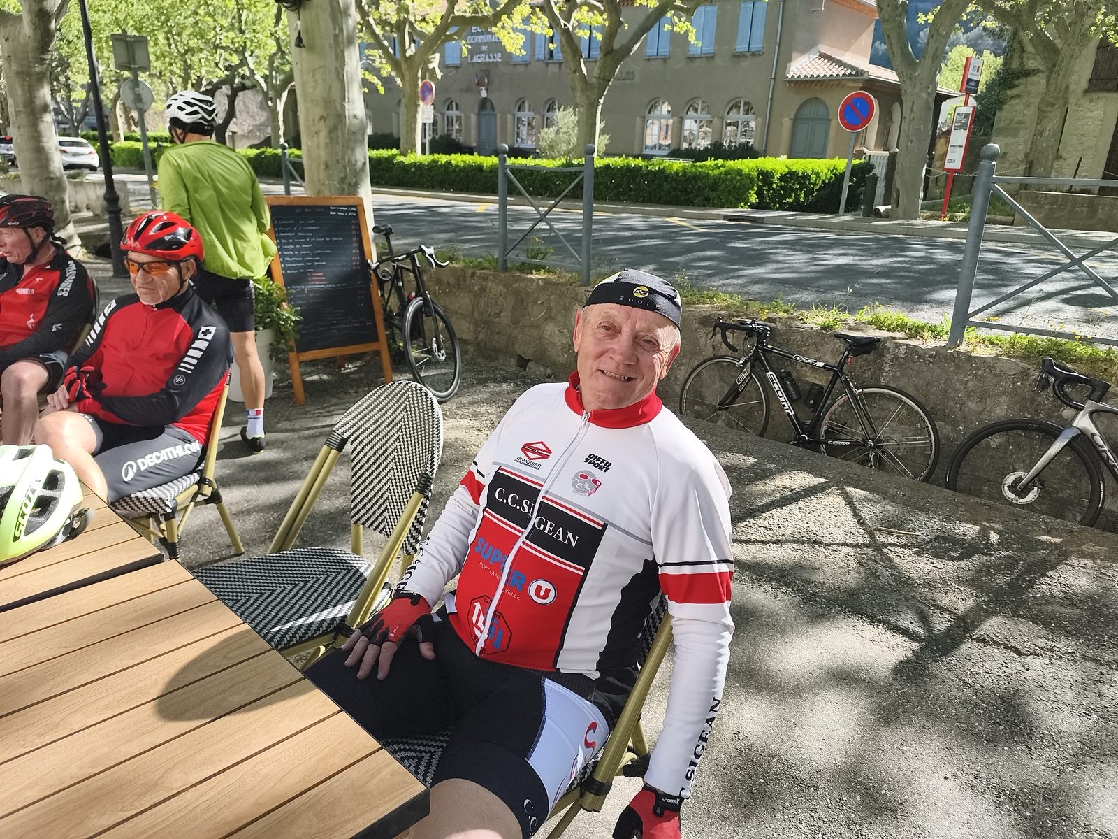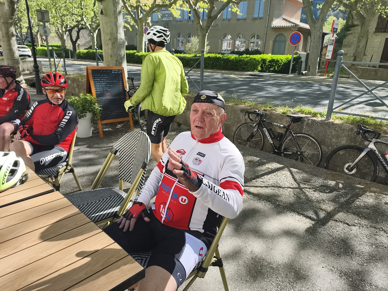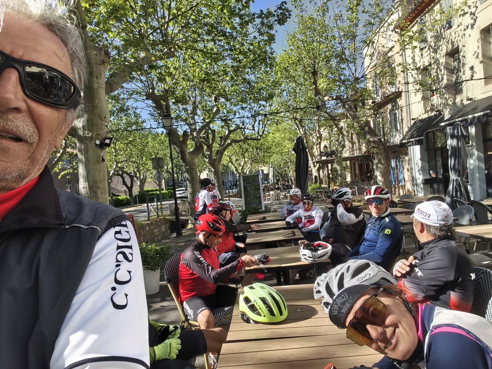 Sortie club avec une pause à Lagrasse où notre ami Olivier nous a payé le café de l'amitié