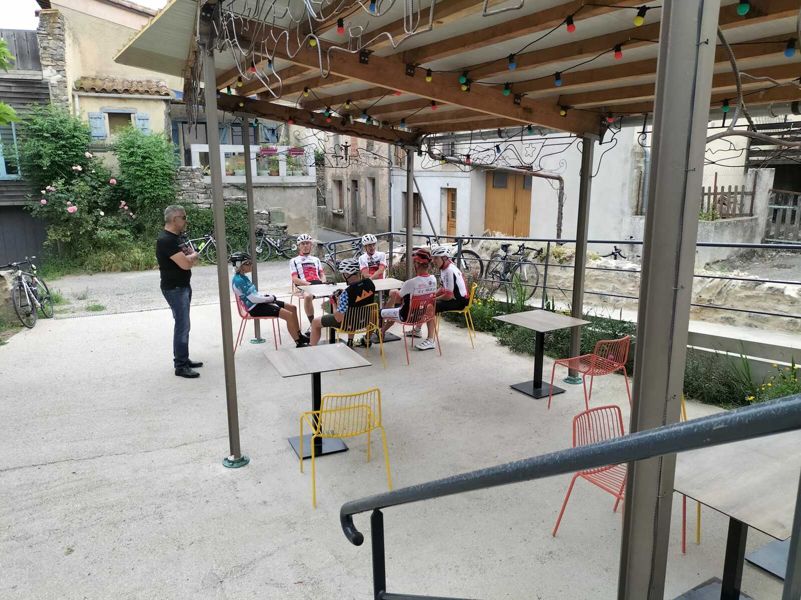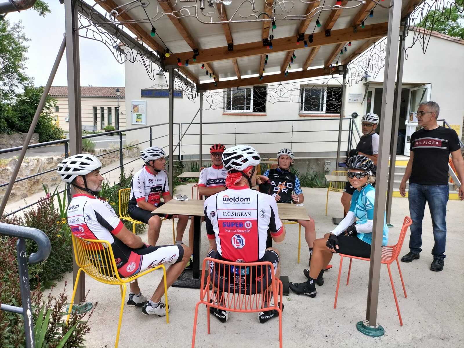 Le circuit qui partait de Sigean allait juqu'à Couiza et retour. Les plus costauds ont poursuivi mais la plupart a opté pour un retour à partir de Pont d'Orbieu via Vignevieille. C'était déjà un bon circuit qui a du faire mal aux jambes. Le café fut payé par Richard au restaurant municipal de Mouthoumet déjà connu pour la rapidité de son service