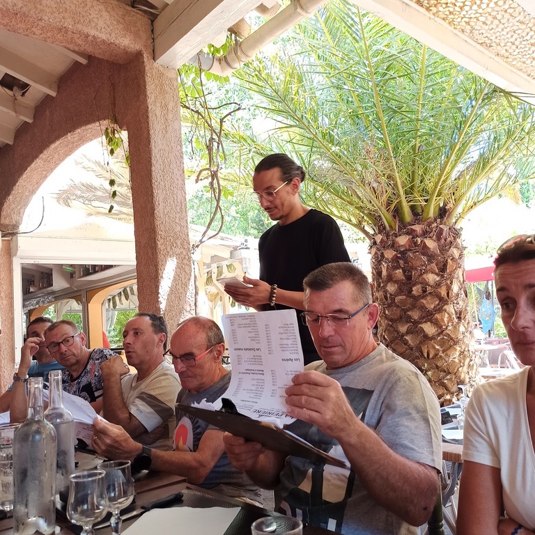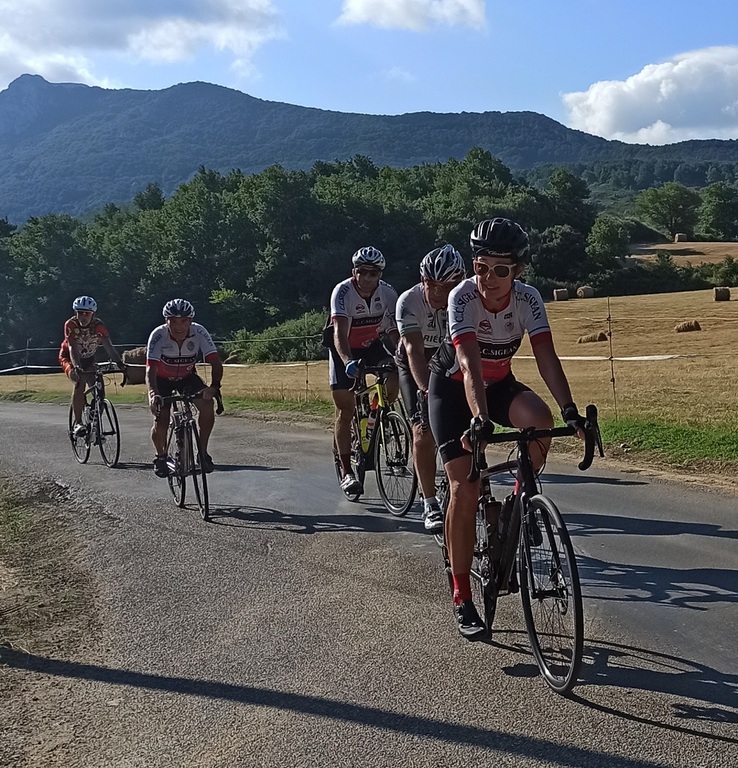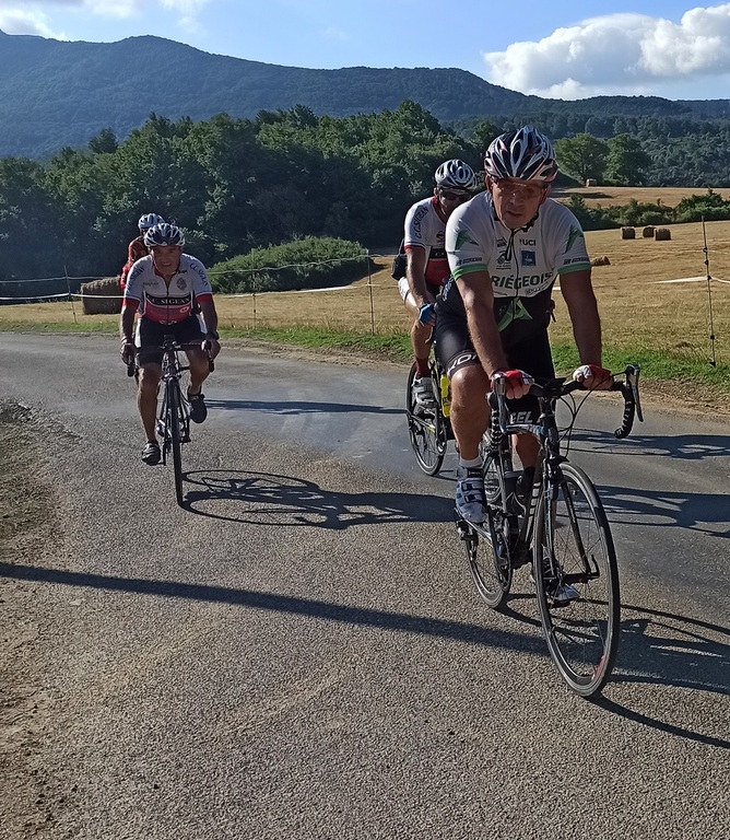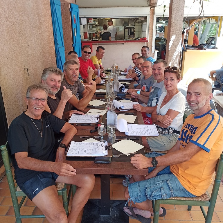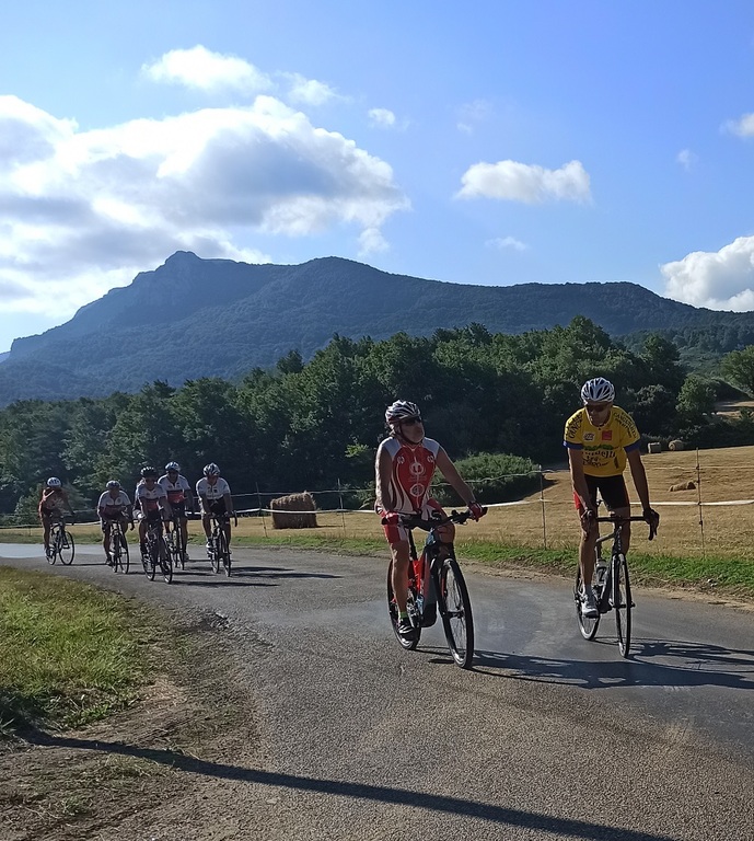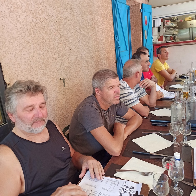 Nous étions quinze cyclos à faire le déplacement à Tuchan pour effectuer un magnifique parcours situé entre les deux côtés de la vallée des Fenouillèdes. Merci à Jacques, Mathieu et Charles pour nous avoir régalé à travers ce périple qui a fait découvrir à beaucoup les gorges de Galamus et le barrage de Caramany. Ensuite la joyeuse troupe a festoyé au Camping La Pereire où l'accueil, le repas, le site et le prix étaient sans faute.