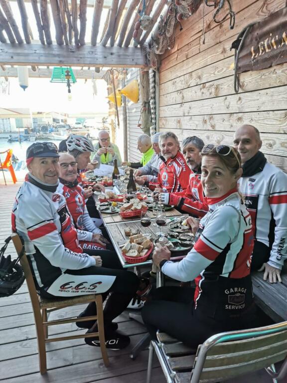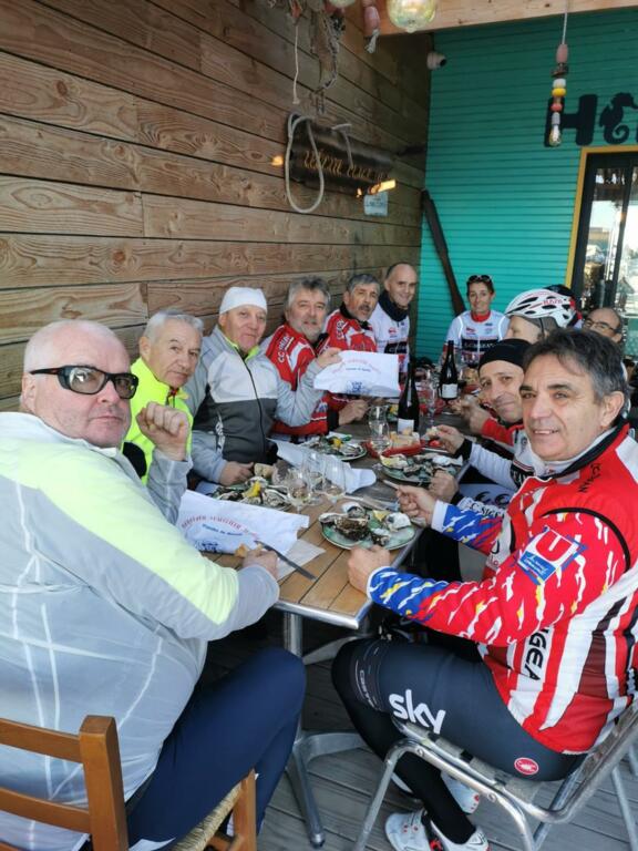 Pour ce premier mercredi de l'année 2023 il fallait bien des huitres pour emmagasiner les éléments minéraux nécessaires aux cyclistes du club. Ce fut chose faite ce jour à l'Hippocampe de LEUCATE cher au cœur de Babeth. A voir la mine réjouie des participants on voit bien que les huitres avaient aussi le goût prononcé du vin blanc